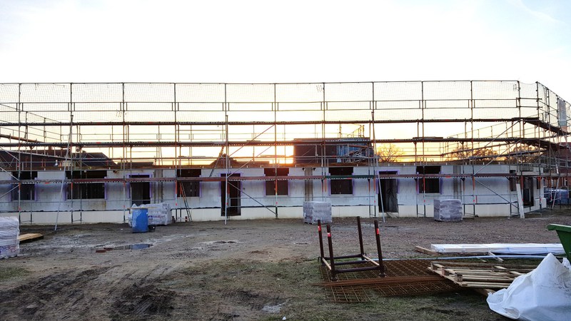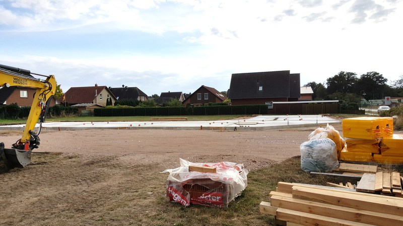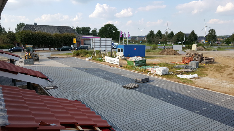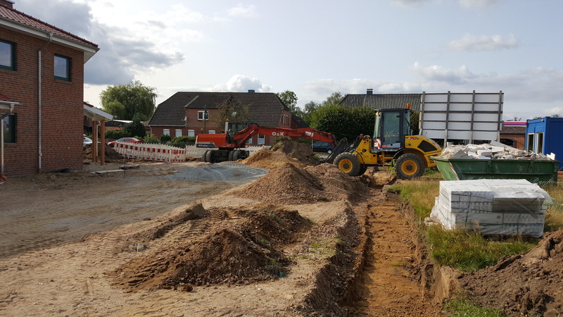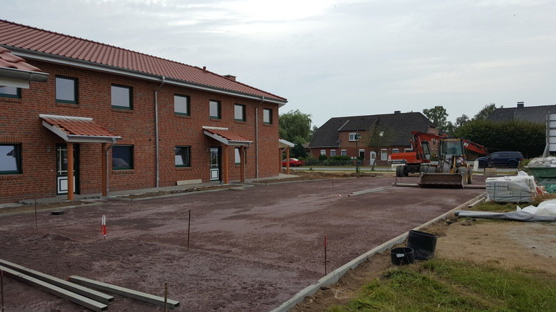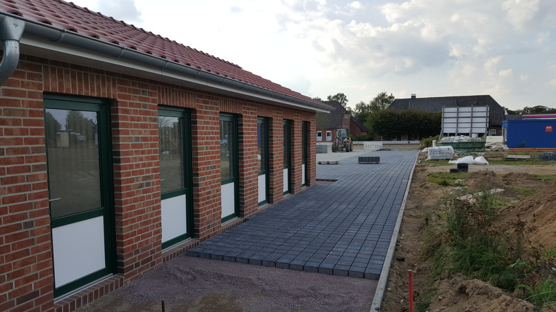Zur Zeit stehen die Pflasterarbeiten an.